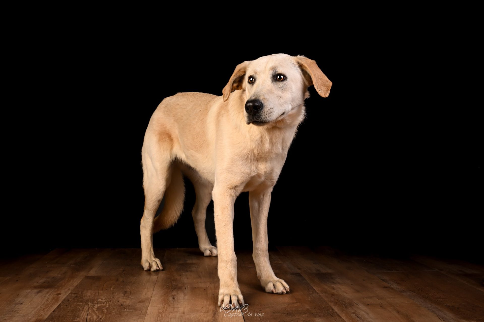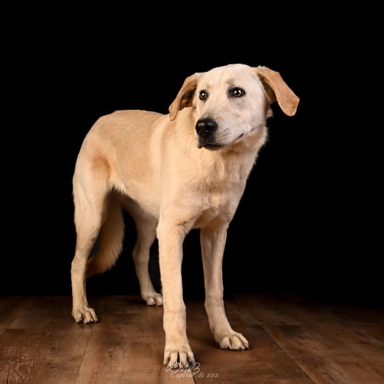 C’est une jeune chienne joyeuse, sociable. Elle pourra vivre avec enfants, chiens. Un test chat pourra être effectué au refuge.